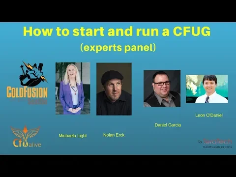 Hey, welcome back to the show here we have a special episode. And it's a panel of cold fusion user group experts. We've got Leon, Nolan and Daniel. So and we might have drew as well joining us, he isn't here yet. But if you pop in the middle, I'll introduce him there. And my name is Michaela light. This is the CF alive podcast. And today we're going to be looking about running or starting a cold fusion user group. So welcome, everyone. And if you don't know, our guests here, Leon runs the Seattle cold fusion user group. And Nolan runs a user group down in Mount Shasta area in California.