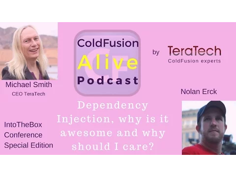 Nolan Erck talks about “Dependency Injection, why is it awesome and why should I care?” in this episode of ColdFusion Alive Podcast with host Michaela Light. Nolan has been developing software professionally for more than 19 years, starting in the video game industry as a Tools Programmer advancing to web development in 1999. He has worked on high profile projects for LucasArts, Maxis, Lisa “Left Eye” Lopes, Schools Credit Union, and Alive N Kicking Magazine among others. His list of credits includes Grim Fandango, Star Wars: The Phantom Menace, SimPark, and SimSafari, as well as high-traffic websites for a variety of technology-based companies.