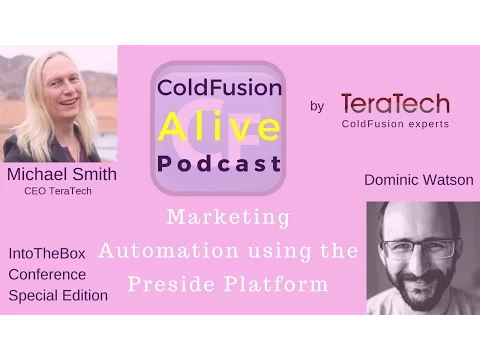 Dominic Watson talks about “Marketing Automation using the Preside Platform”, in this episode of the ColdFusion Alive Podcast, with the host Michaela Light. Dominic is one of the speakers for the upcoming Into The Box ColdFusion Conference, where he will talk about Preside Platform Deep Dive.
